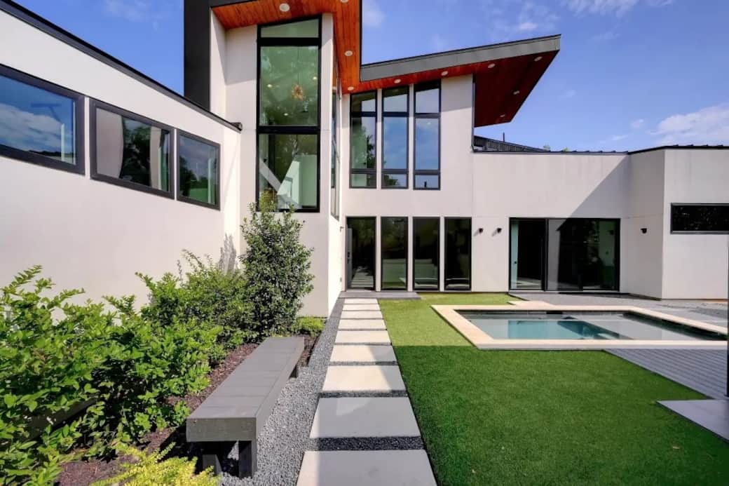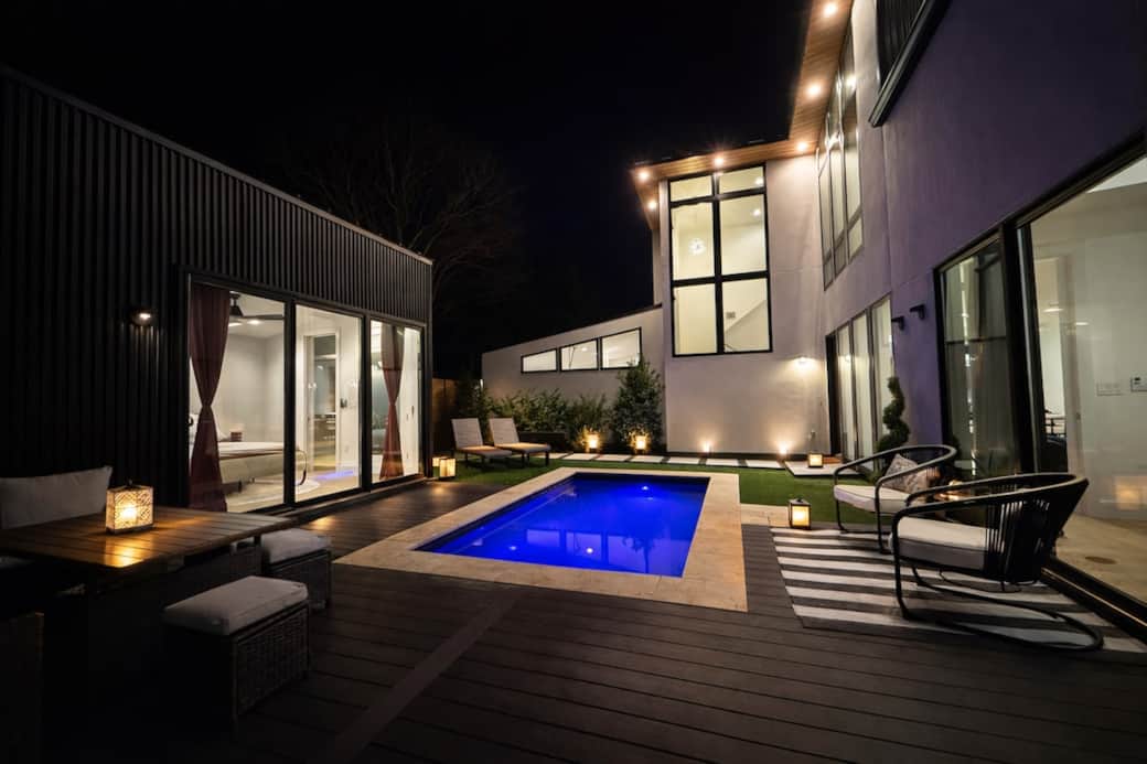 Designed for families and groups, the property features spacious gathering areas, a chef’s kitchen, spa-inspired bathrooms, hotel-quality bedding, a private detached casita, and a dipping pool that converts into an oversized hot tub. Whether you’re in Austin for a weekend escape, celebration, family trip, or event-filled stay, The Chote House offers a polished, design-forward experience in the heart of East Austin.