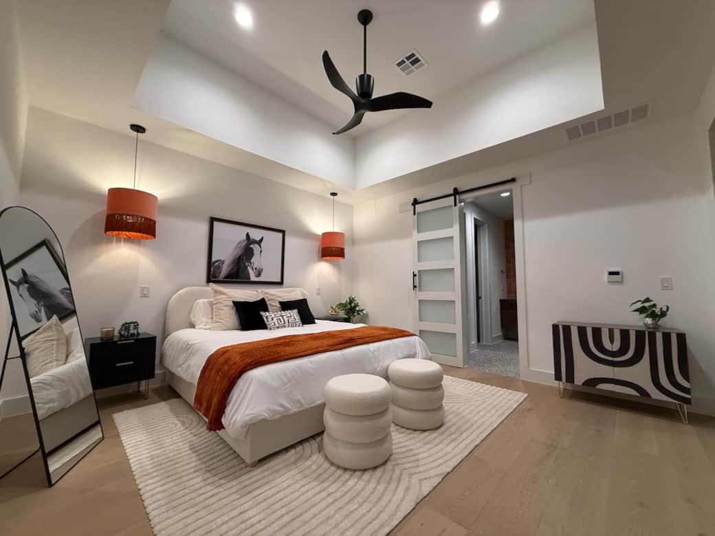 Thoughtfully designed for both style and comfort, The Chote House combines striking architecture with warm, livable spaces. High ceilings and expansive windows fill the home with natural light, while curated interiors and modern finishes create an upscale but welcoming atmosphere.